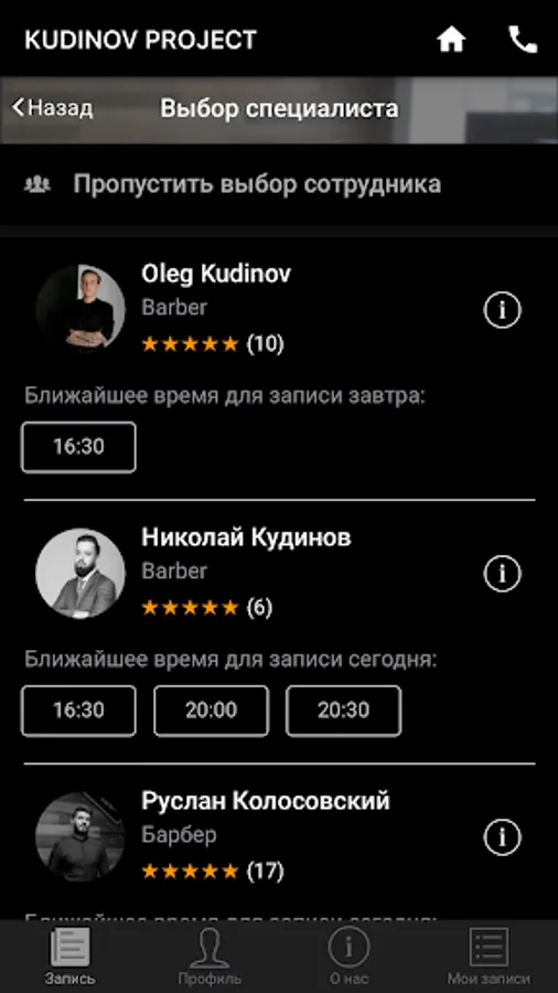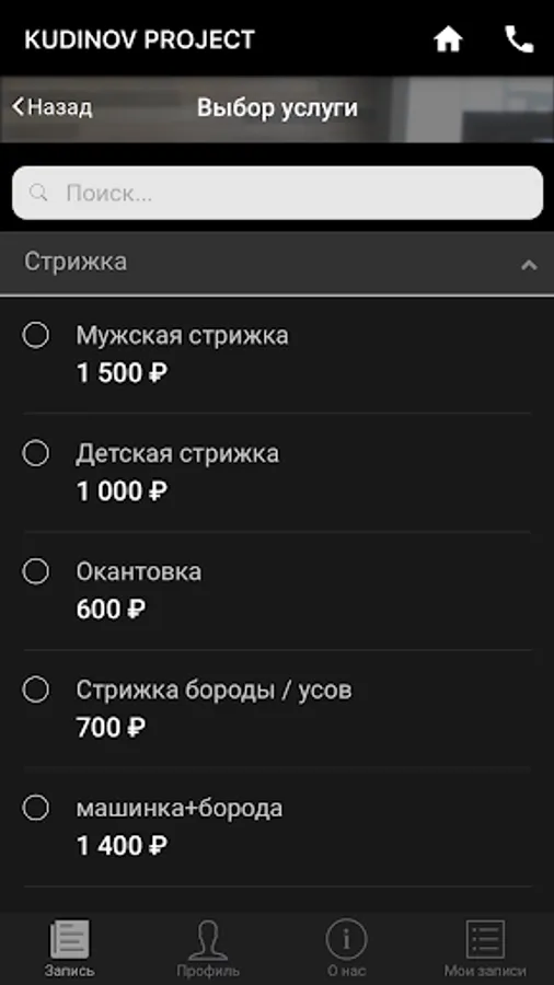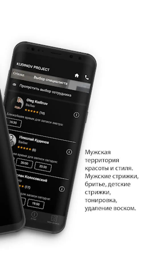 The official app of the Kudinov Project barbershop chain in Pyatigorsk.