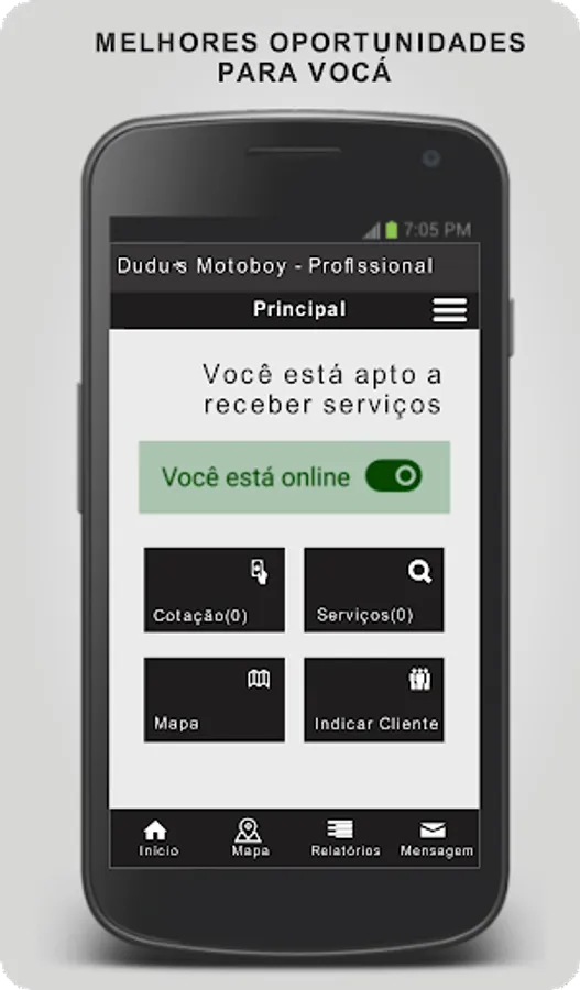 Application for professionals who provide Motoboy service. This application needs to take your location in the background, so that you can be located by the system when there is service near you