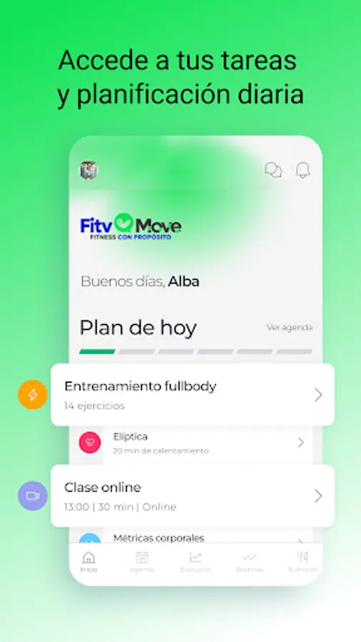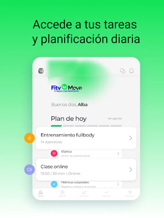 Start and pursue your fitness lifestyle with the help of an interdisciplinary team of professionals specialized in exercise science and nutrition, receive your training program and 100% personalized sports nutrition, adapted to your needs and goals. FitvMove makes it easy for you to manage your tasks and exercises. You can also share your progress, metrics, results and evolution with us in a fast and practical way. We apply science and evidence in your process efficiently and intelligently.