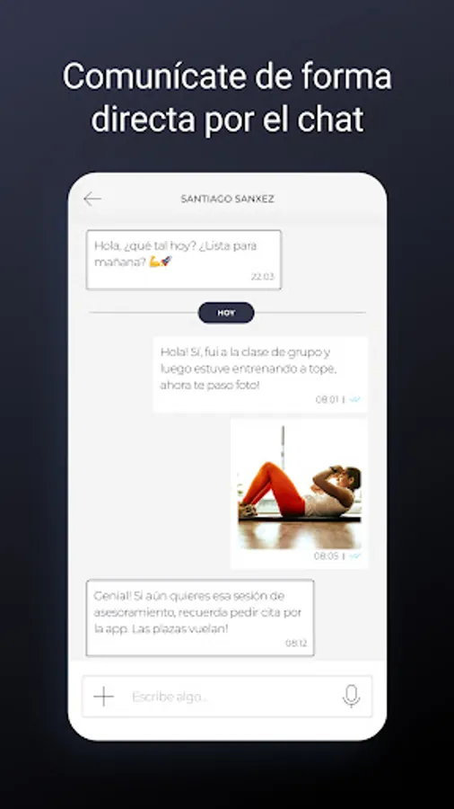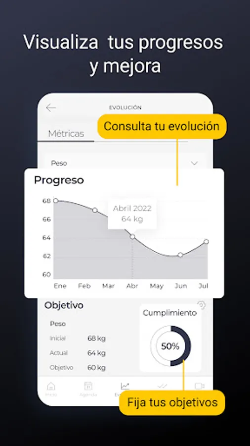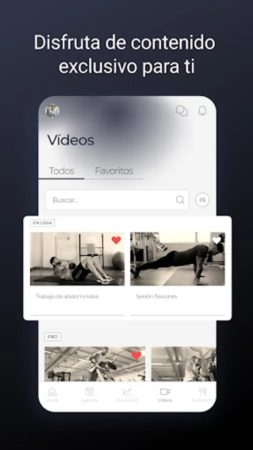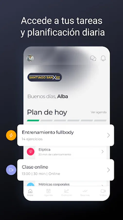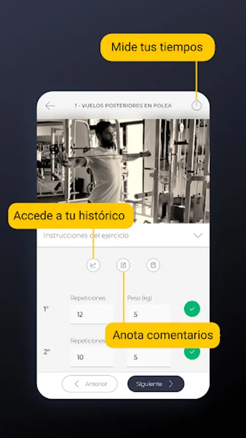 Receive your personalized food and training plan through the app. All the programmed exercises have a video tutorial attached to know what they are and how to do them.