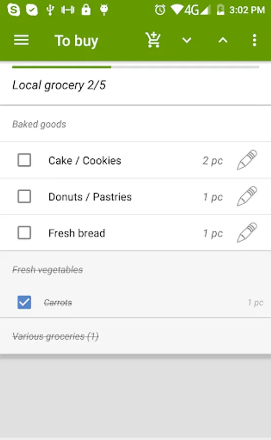 - calculate sum of all the checked products on the shopping list,