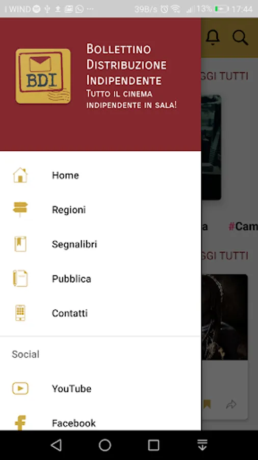 The Independent Distribution Bulletin - BDI - is an APP that informs all cinema fans about dates and places of the screenings of films and documentaries of Italian independent distributors. All appointments with quality cinema, all over Italy.
