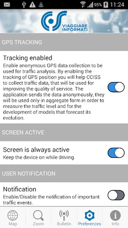 iCCISS allows the mobile user to access to traffic information and safety alert managed by CCISS in real time and for free.