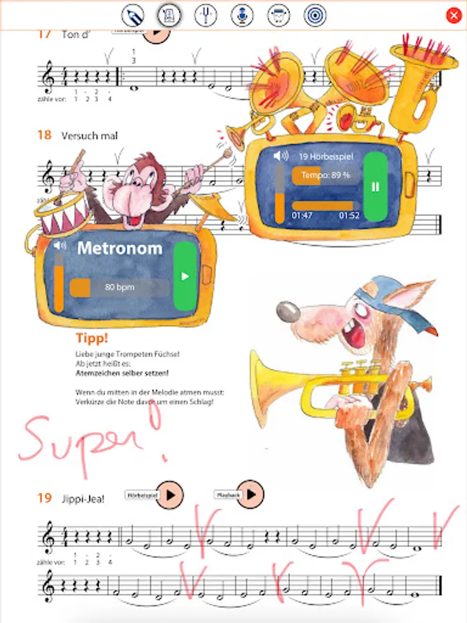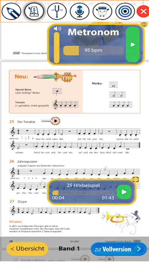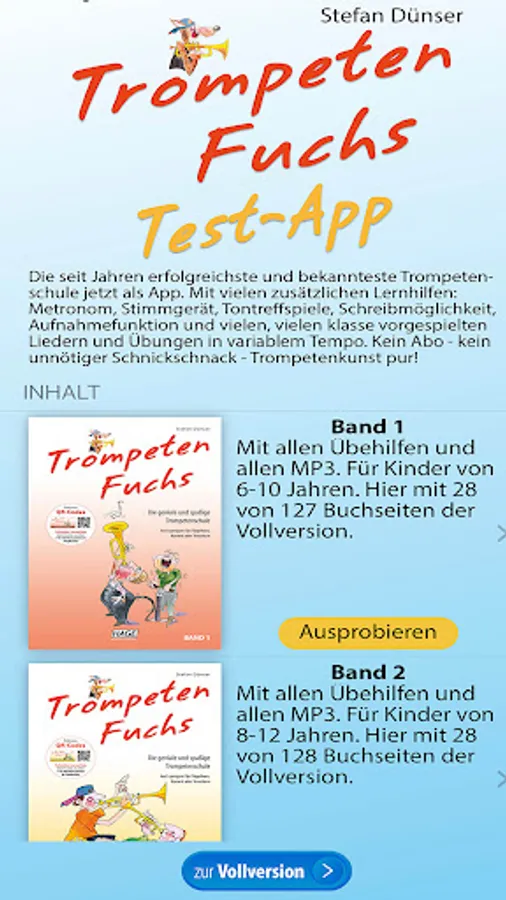 The most successful and famous trumpet method is now available as an App. Here you will find additional Tools to help you learn: metronome, tuning machine, pitch accuracy games, tools for text writing, a recording function as well as many excellently performed