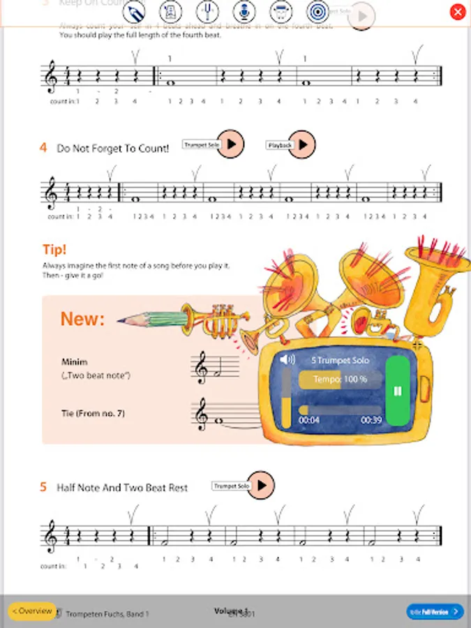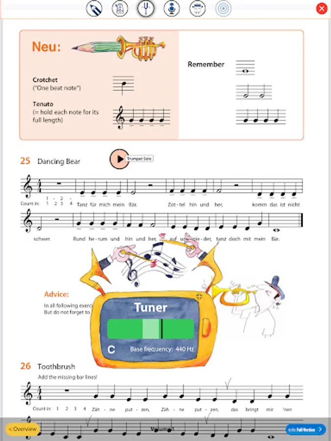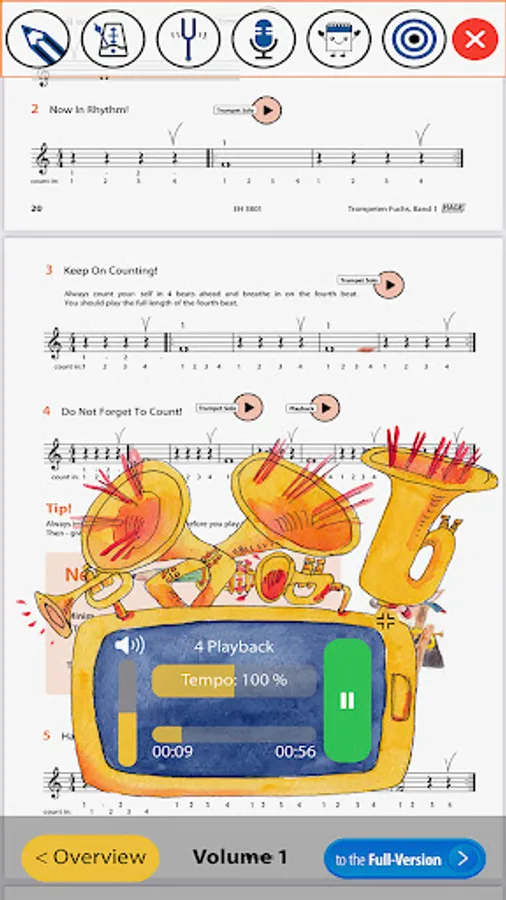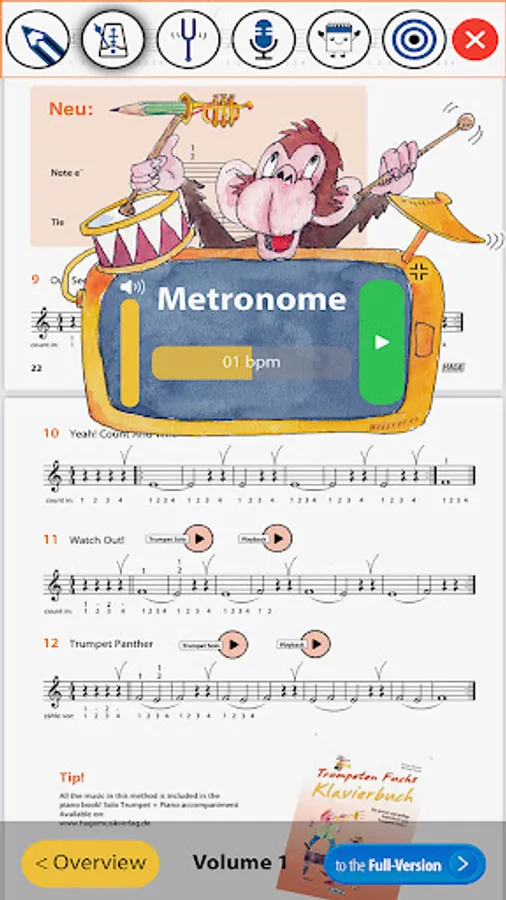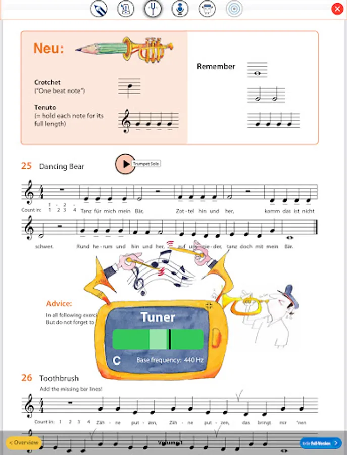 The most successful and famous trumpet method is now available as an App. Here you will find additional Tools to help you learn: metronome, tuning machine, pitch accuracy games, tools for text writing, a recording function as well as many excellently performed