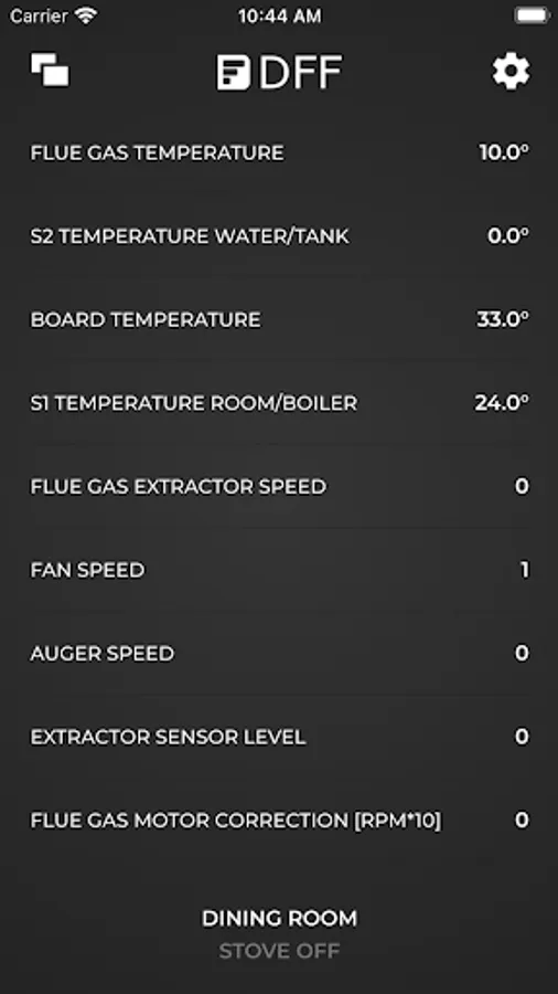 Have real-time access to various operating parameters, such as flue gas and room temperature (in the case of the stove), state of the room fan and auger, etc.