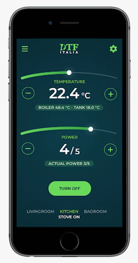 It is now possible thanks to the DTF application developed by Duepi Group srl. Thanks to it it is possible to have full control of your stove, being able to: