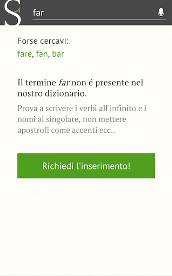 L'App funziona in parte anche offline, per cercare nuove parole è necessario l'accesso a internet.