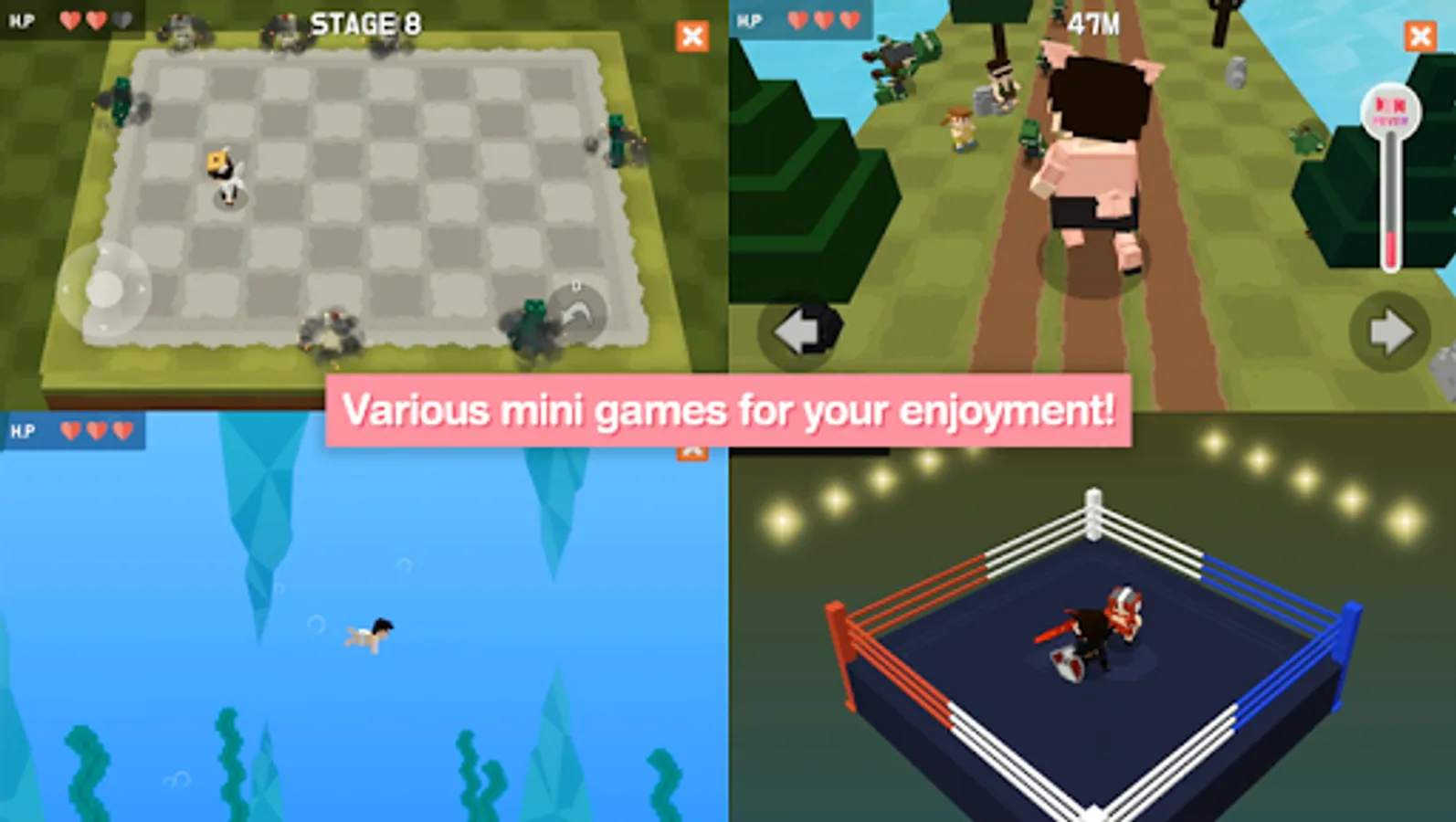 Your character grows up in a town made of blocks, and everything you see is interactive!