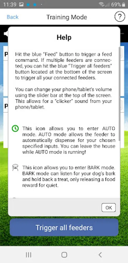 This app is specifically designed to control Low Energy Bluetooth devices as part of the Pet Tutor(r) animal training system. Multiple feeders and accessories may be connected to the app. Accessories send commands to the app which in turn will trigger associated feeders for training and enrichment.