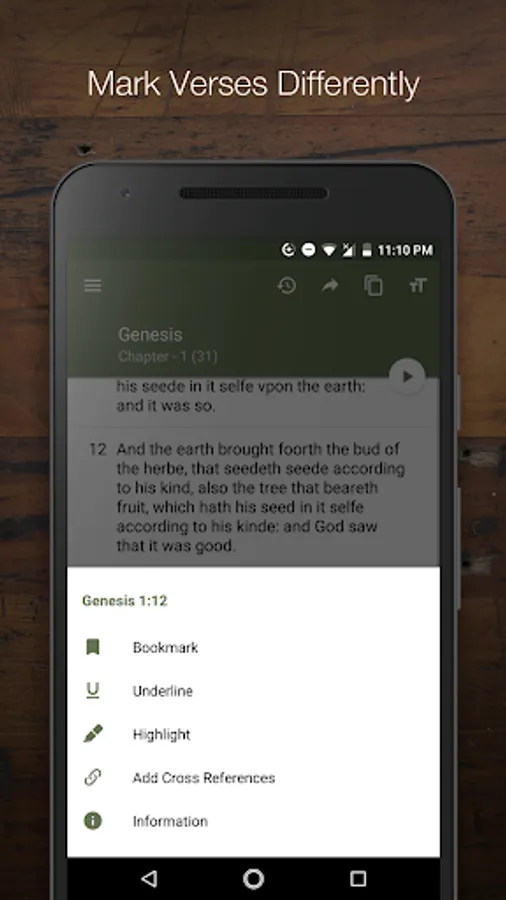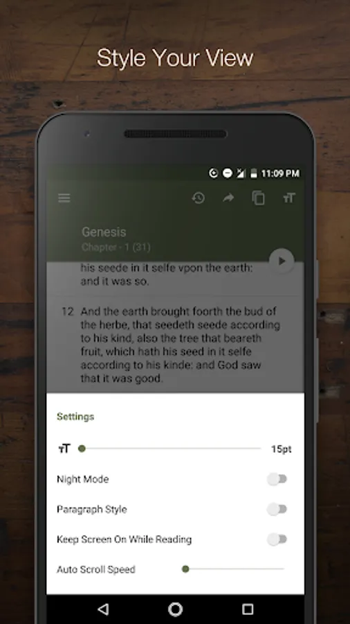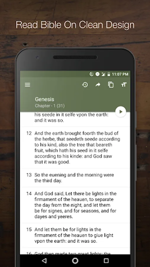5. We will be able to see three buttons in top of screen. One for sharing verse, copying verses, font settings. Feel free to use it.