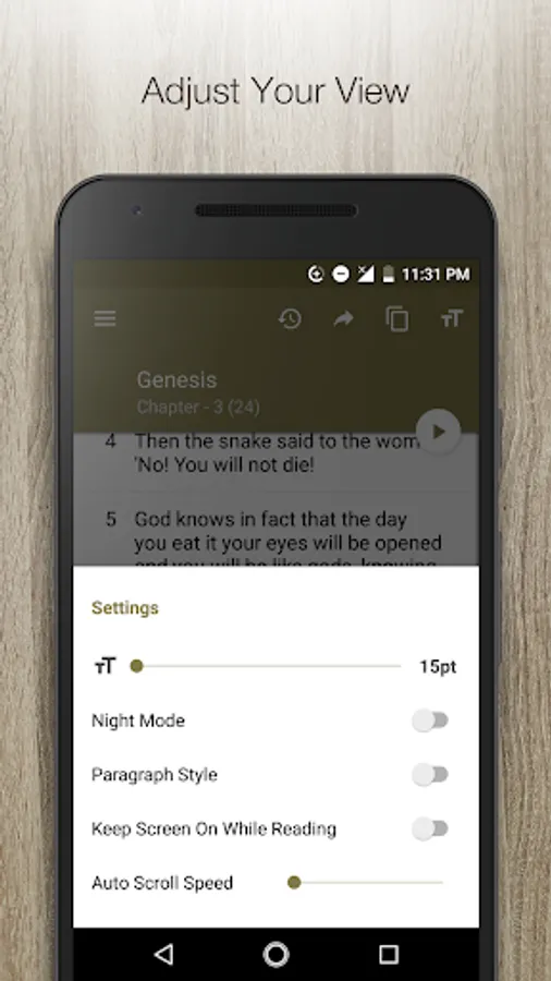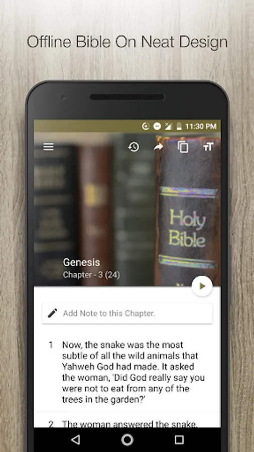 5. We will be able to see three buttons in top of screen. One for sharing verse, copying verses, font settings. Feel free to use it.