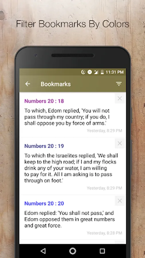 4. Click on each verse to bookmart, highlight,
