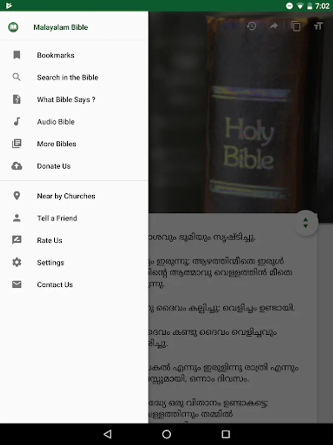 5. We will be able to see three buttons in top of screen. One for sharing verse, copying verses, font settings. Feel free to use it.