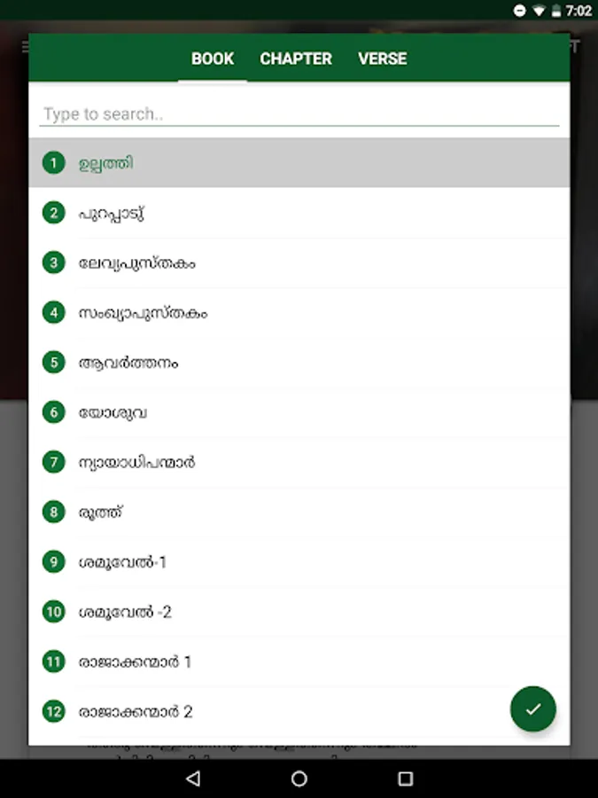 1. Click on chapter name. It will show popup screen to select book and chapter.