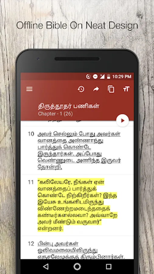 5. We will be able to see three buttons in top of screen. One for sharing verse, copying verses, font settings. Feel free to use it.