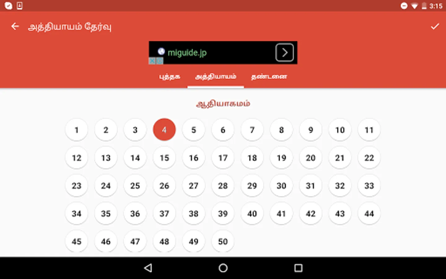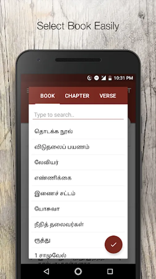 1. Click on chapter name. It will show popup screen to select book and chapter.