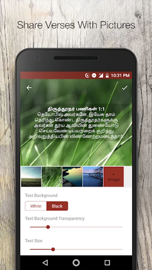 7. Share verses with image backgrounds.