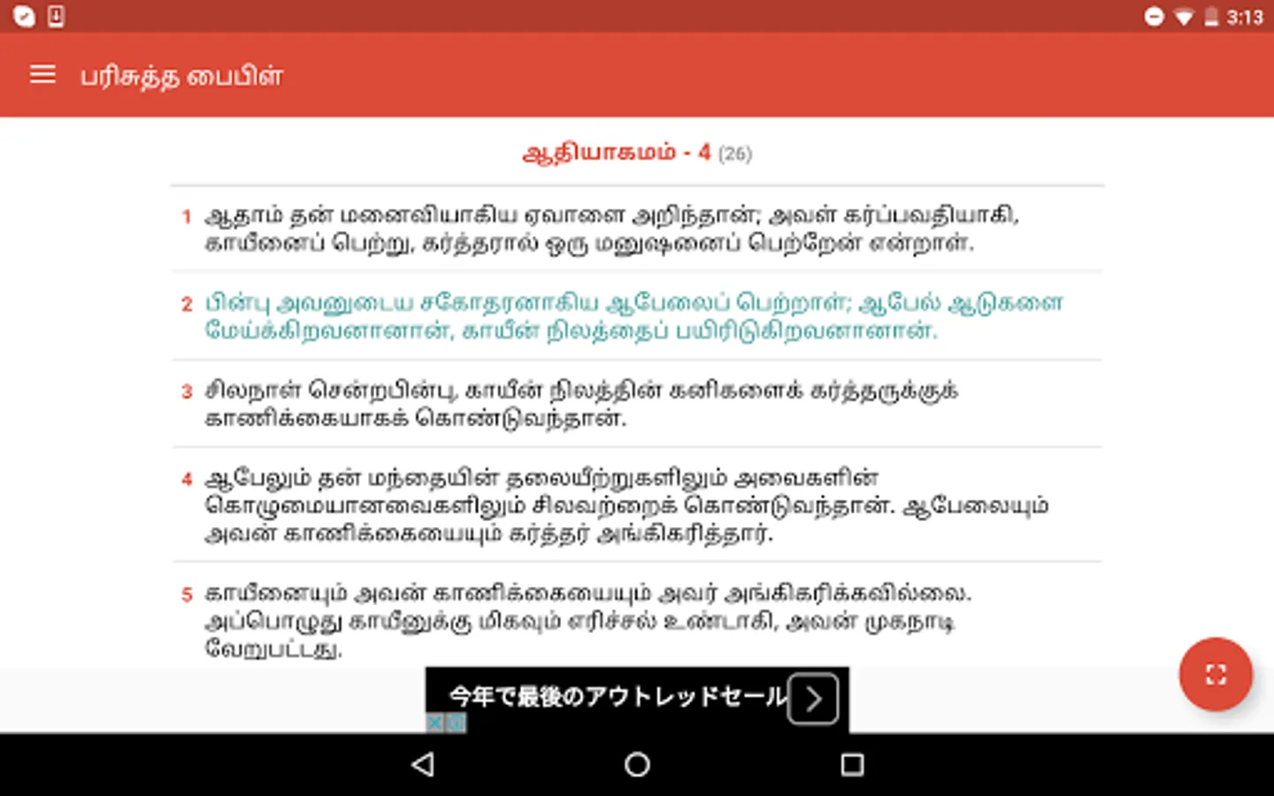 3. Scroll up and down to see all verses in particular chapter.