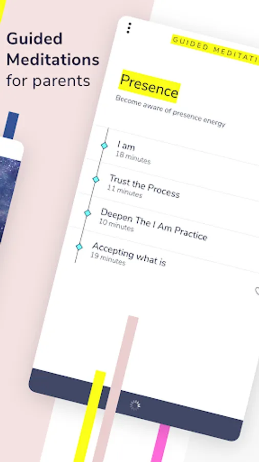 While parents remember a natural loving space free of expectation, judgement and guilt towards themselves and their kid(s), they re-activate the bliss that lies within every single moment. Every guided meditation remind parents to relax