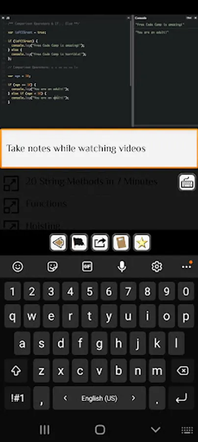 Interactive Coding Environment: Write, run, and test code within the app using an interactive coding environment.