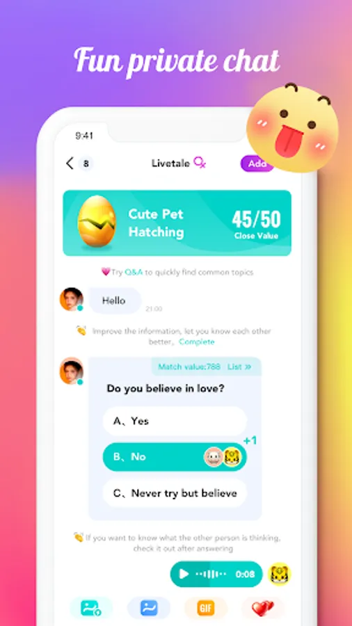 You can chat at any time, anywhere with a mobile data or WIFI, with us, you can meet the one you like.
