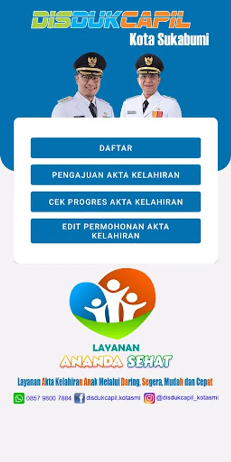 It is an application used to submit applications for the issuance of birth certificates online from the Department of Population and Civil Registration of Sukabumi City with the aim to facilitate, accelerate and make the community happy in the process of issuing birth certificates.