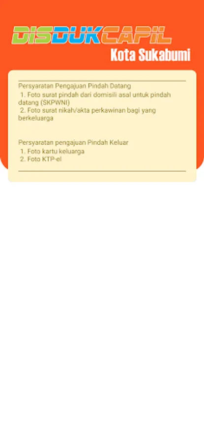 Is an application used to apply for the issuance of moving letters online from the Department of Population and Civil Registration of Sukabumi City with the aim of simplifying, accelerating and making the community happy in the process of issuing moving letters.