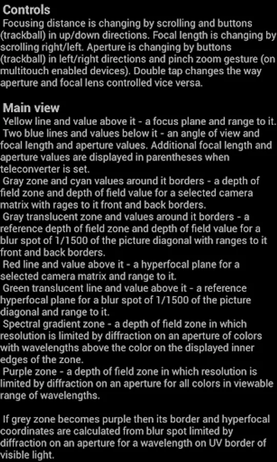 Takes into account diffraction on an aperture for all colors in viewable range of wavelegths.
