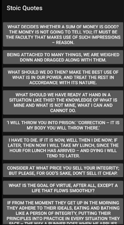 This app features full database of stoic quotes from stoics around the world!