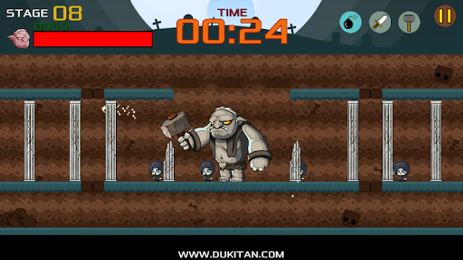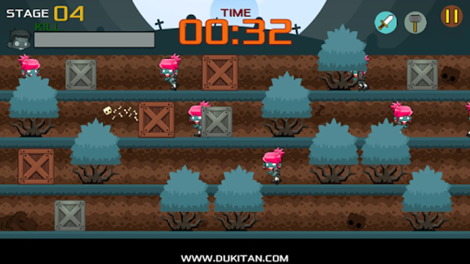 key words: zombies, skeletons, reaper, zombie boy, zombie girl, boss, crash, crush, smash, weapons, hammer, sword, bomb, funny, arcade, single, halloween