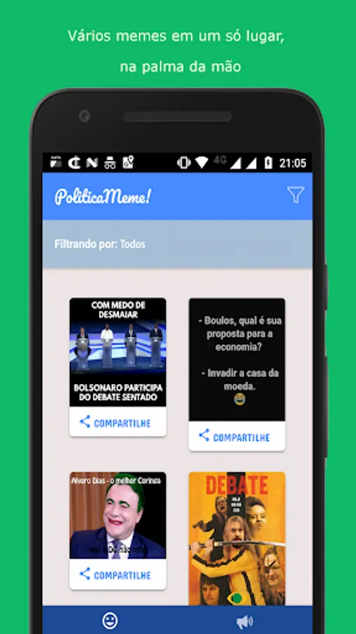 PoliticaMeme comes with a proposal to be a collection of the most diverse memes involved with the main politicians in Brazil. Whether good or bad, you'll find a huge range of memes at your disposal.