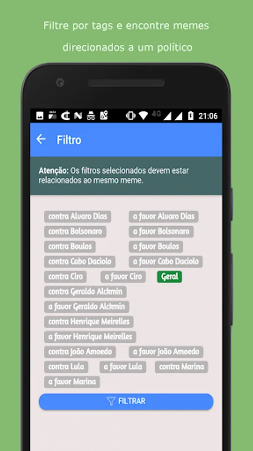 Get access to memes by Jair Bolsonaro, Geraldo Alckmin, Marina Silva, Álvaro Dias, João Amoêdo, Luís Inácio Lula da Silva, Ciro Gomes, Cabo Dacilo, among others.