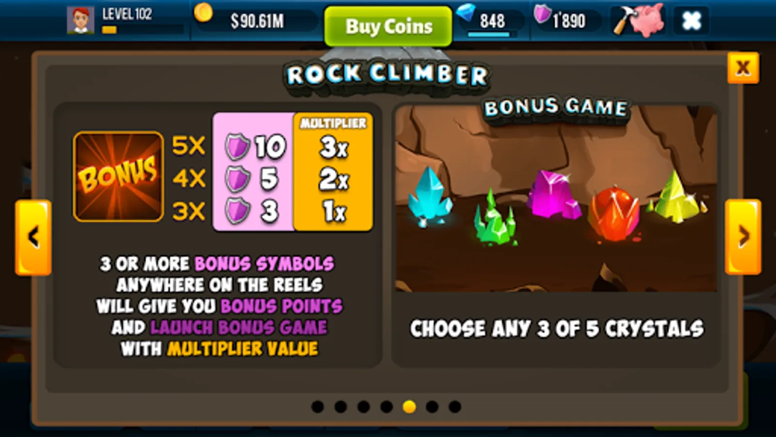 Now you can play amazing Rock Climber Slot Machine any time and anywhere! Just connect your Facebook account and stay synced with coins, gems and your progress! Also you may invite friends and receive FREE COINS & GEMS Rewards!