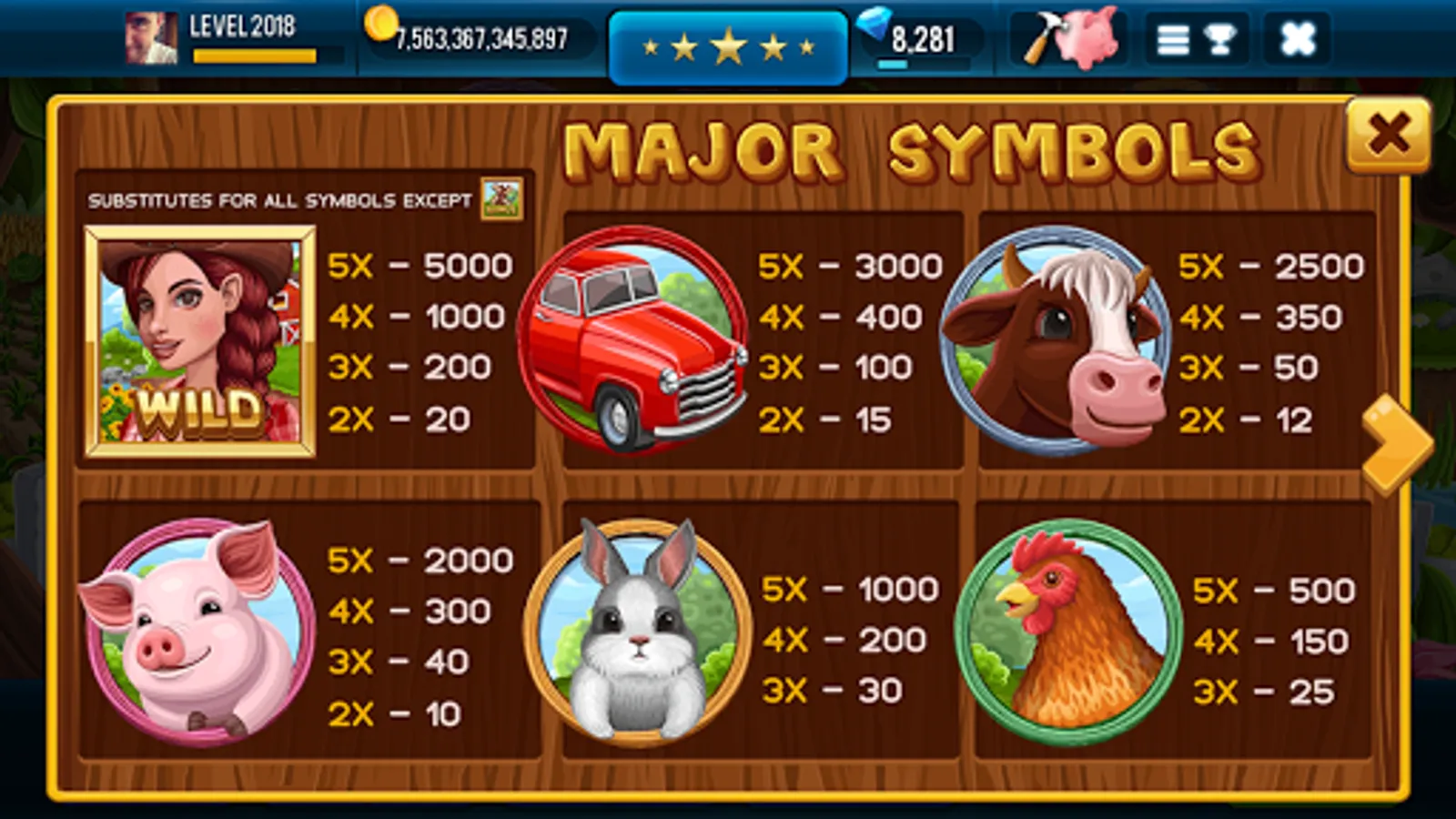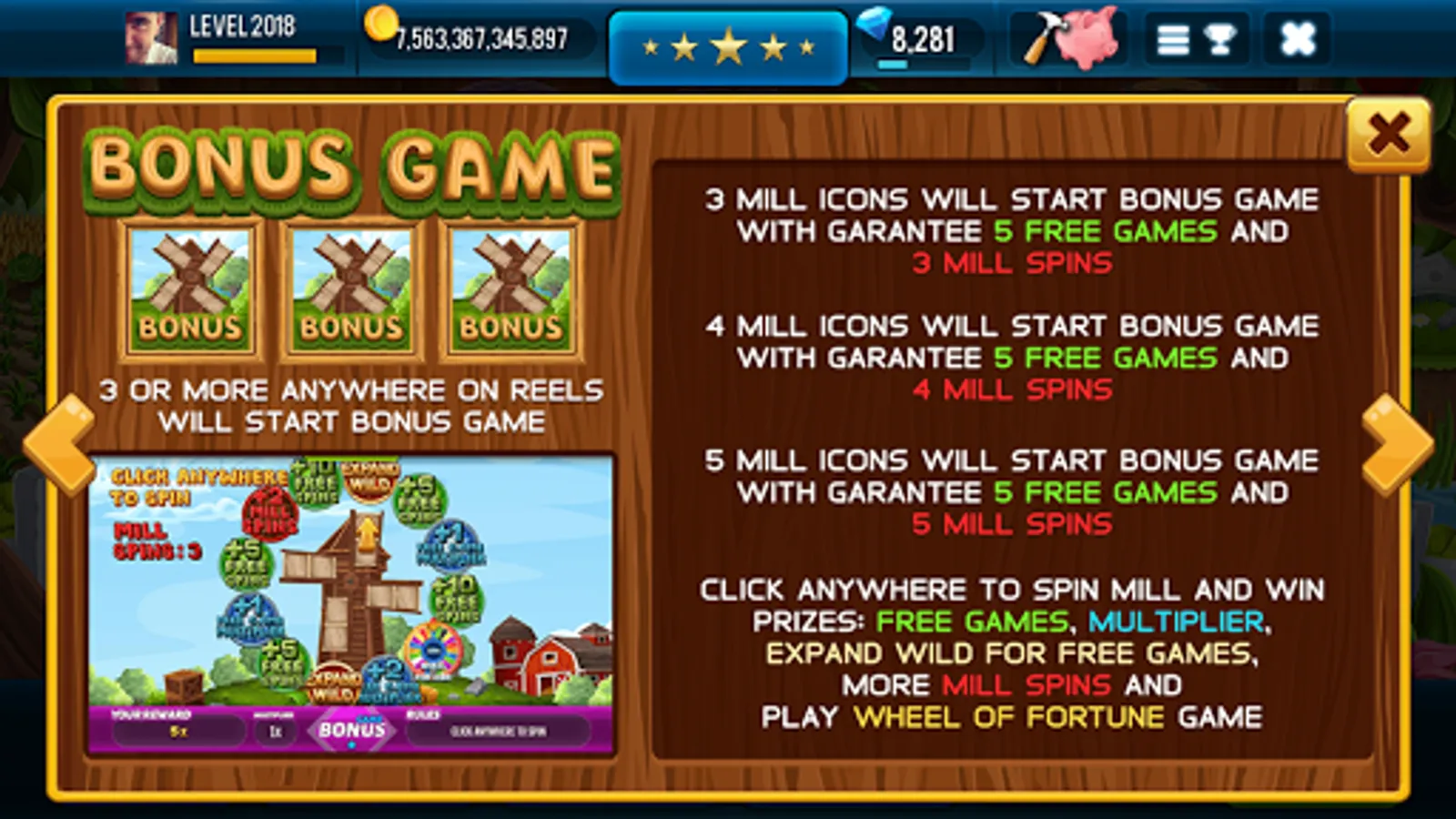 Now you can play amazing Farm & Gold Slot Machine any time and anywhere! Just connect your Facebook account and stay synced with coins, gems and your progress! Also you may invite friends and receive FREE COINS & GEMS Rewards!
