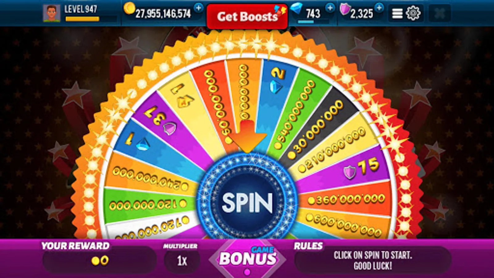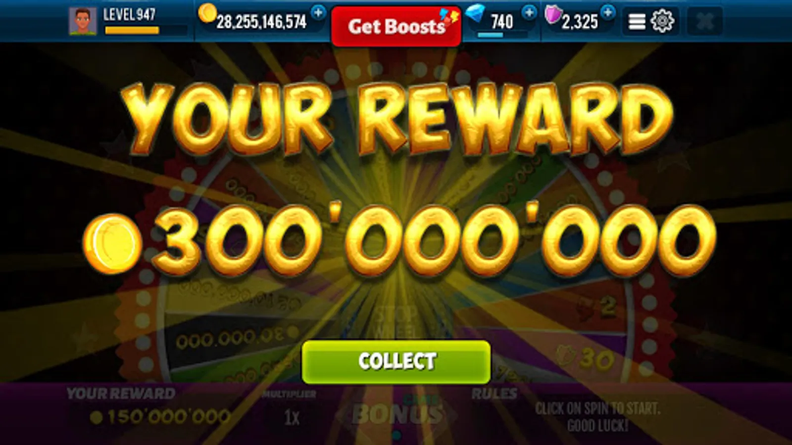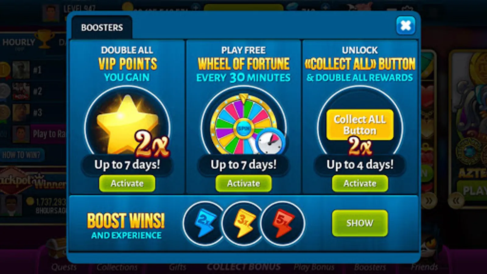 Collect VIP Status Points to get more rewards & bonuses! You will get VIP Status Points for all your experience: spins, wins, invites, purchases, level-up and much more!