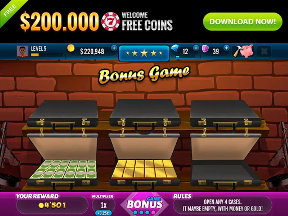Welcome and Play popular Las Vegas Mafioso Slot Machine. Start now and collect welcome BONUS - $200,000 FREE CHIPS in your CasinoSlot game! Inside you will find a lot of FREE COINS rewards, bonus games and amazing slot experience! Play offline your favorite slots game! Play online to get free rewards!