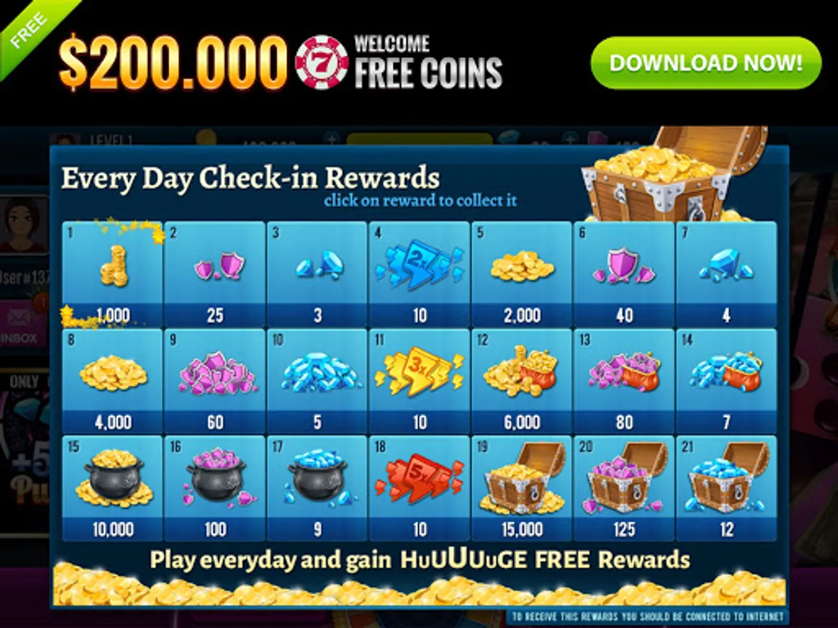 Collect VIP Status Points to get more rewards & bonuses! You will get VIP Status Points for all your experience: spins, wins, invites, purchases, level-up and much more!