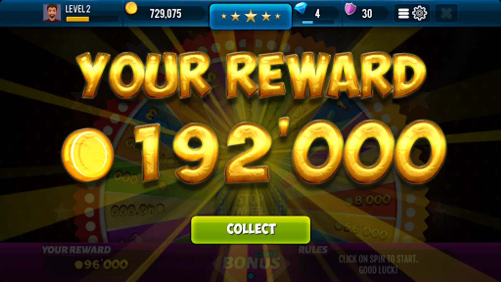 - Use GEMS for double rewards, extra rewards and boost Free-Spin-Game.