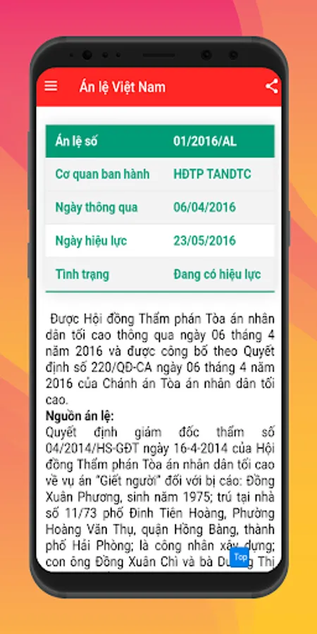 Nếu bạn cần tra cứu về các án lệ đang áp dụng hiện nay, ứng dụng Án Lệ Việt Nam là công cụ hữu hiệu để bạn dễ dàng thống kê, theo dõi các án lệ được ban hành và áp dụng.