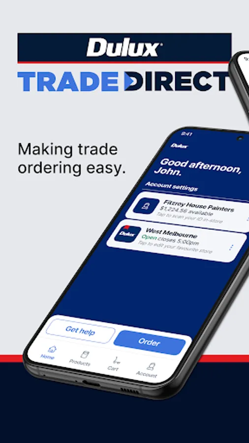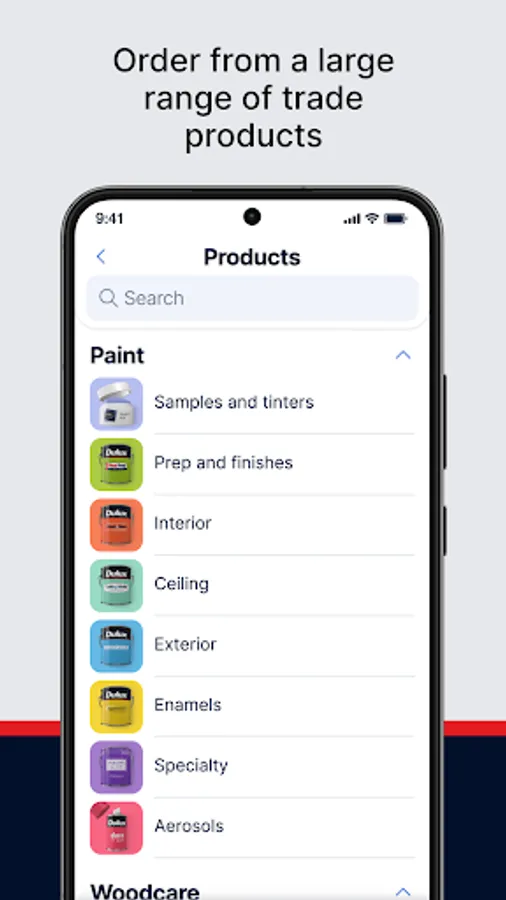 Simply download the app, enter your mobile and Dulux® Trade account number and begin ordering anytime, anywhere.