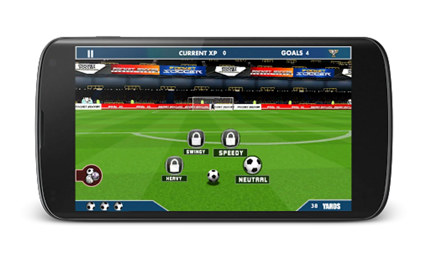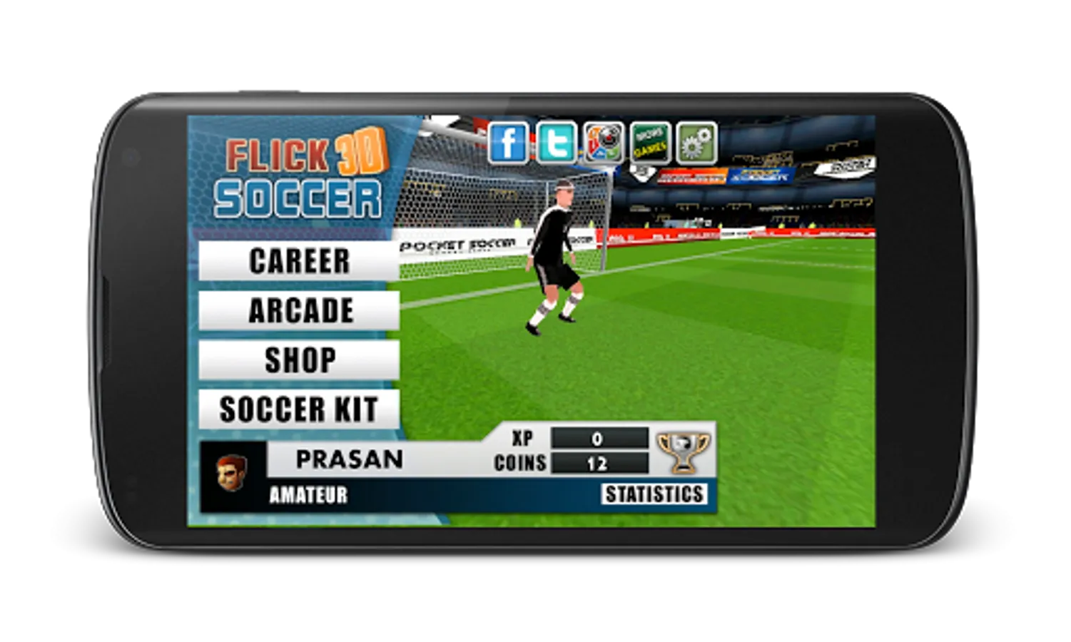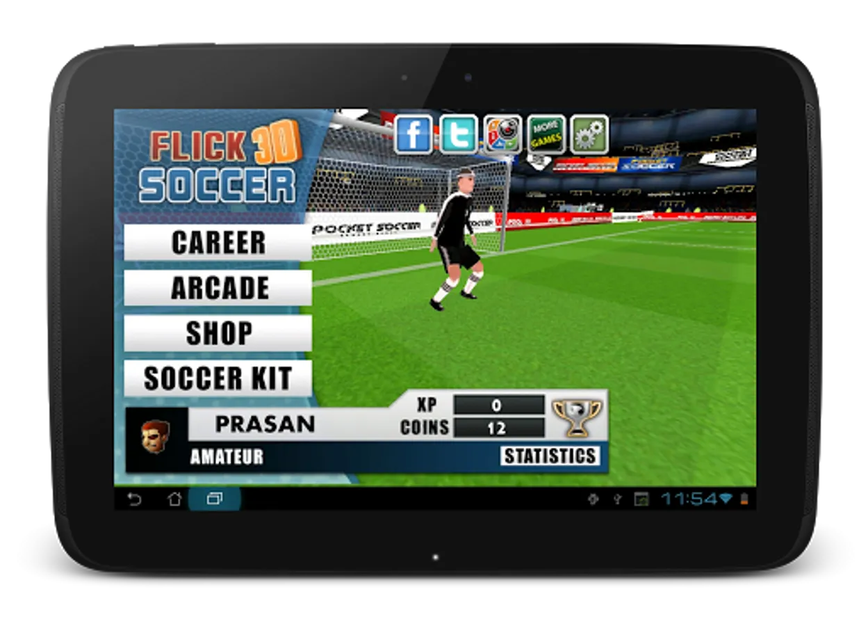 Game objective is to play through the career mode and become legendary soccer player, overcome the obstacles like goalkeeper (primary obstacle) and defender (comes in higher levels), earn experience points and unlock other game modes. Flick soccer integrates 5 difficulty levels - Amateur, Semi - pro, Professional, World class and Legendary