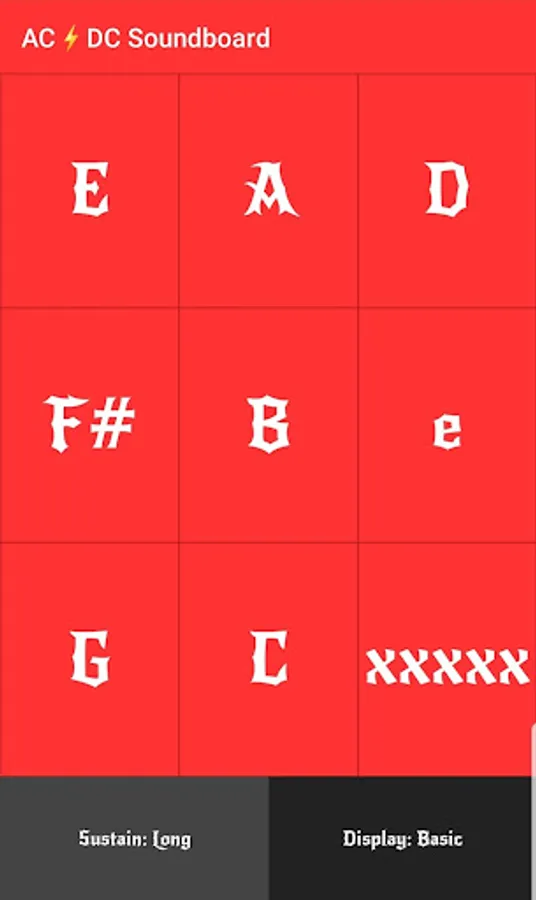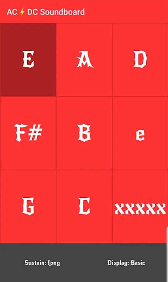 This instrument contains the most common guitar chords used by AC/DC. Surprisingly, many of their songs can be nearly recreated with a soundboard using only 9 power chords. Still, there is an option toggle between the basic and advanced display, which contains more chord variations, allowing for even more creative possibilities.