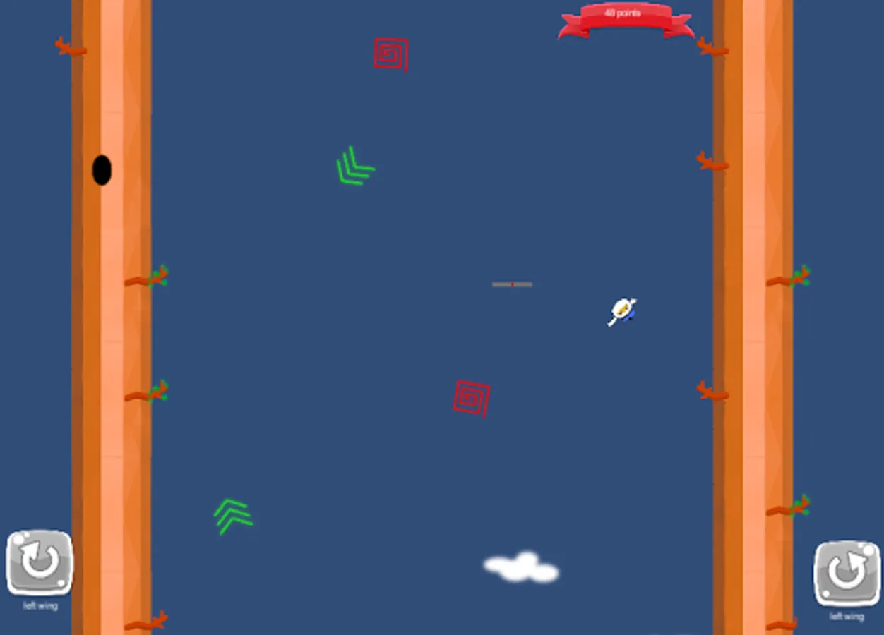 tap left button to wave left wing...tap right button to wave right wing and fly up, but be careful - lava is coming!