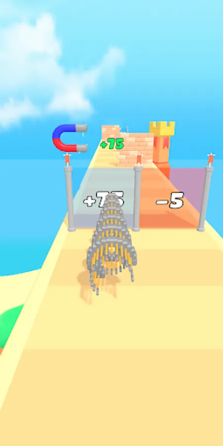 Collect hammers and show your strength! Increase the number of hammers by passing through the correct doors, escape the negative doors! Remember to stay away from magnets, you don't want your hummer count to go down. When you reach the end of the road, see how many walls you can knock down!