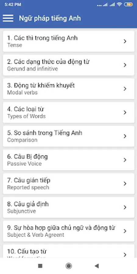 English grammar - Application helps you look up English grammar quickly on your phone.