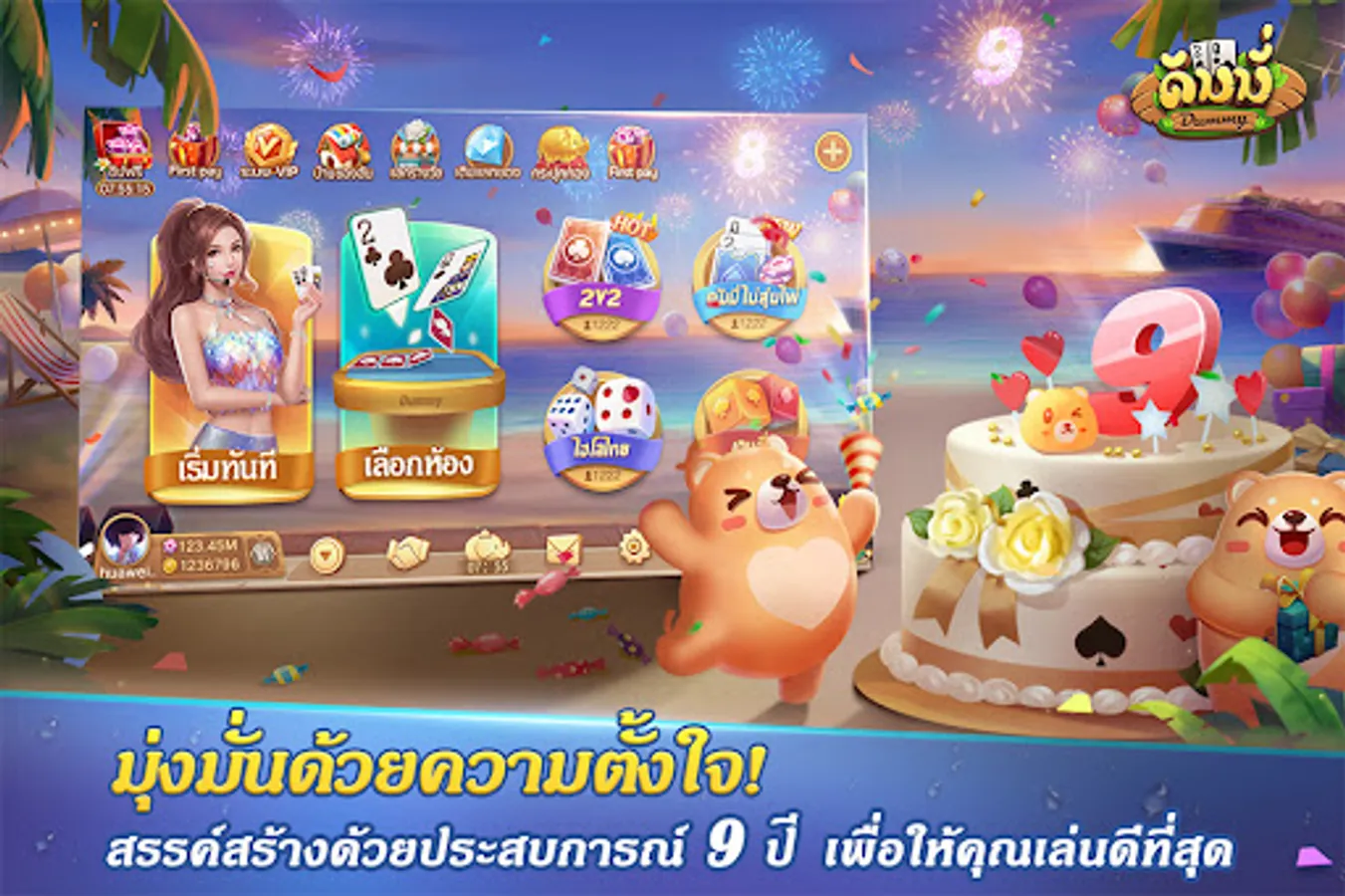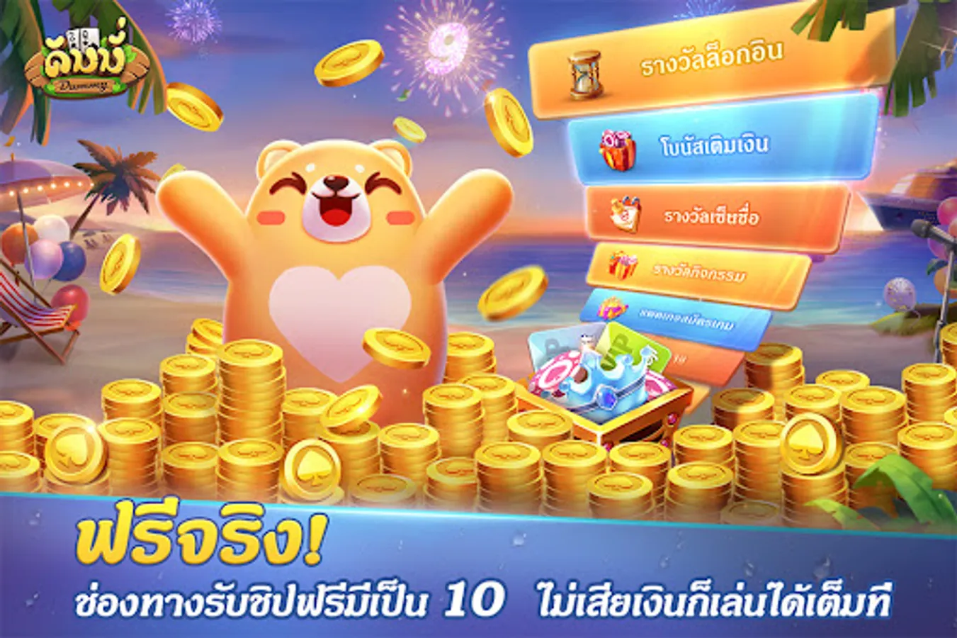 1.【Dummy Cards】It is a Thai dummy that Thai people like the most. will draw/birth/down/deposit cards When someone draws a hand of cards onto the table until there is 1 card left or draws all the cards in the pot Then the game will be over. Then the system will combine the points. The person who gets the most points wins the most chips. If dark knocking is possible Get more free chips!