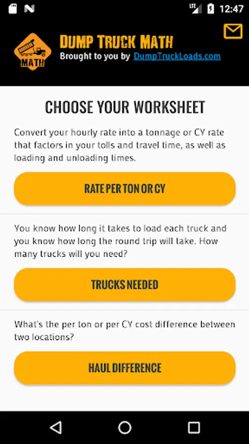 Take the guesswork out of your trucking rates with Dump Truck Math. Our simple, easy-to-use calculators put all of your routine calculations conveniently at your fingertips. Estimators, truck owners, and project foremen alike can benefit from our three basic worksheets: