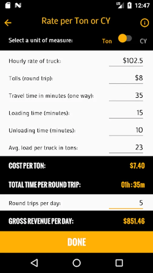 Convert your hourly rate into a tonnage or CY rate that factors in your tolls and travel time, as well as loading and unloading times.