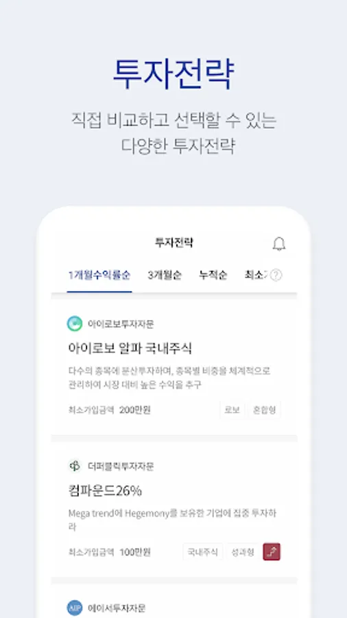 - You can compare and select investment strategies of leading investment professionals at a glance.